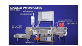La lavadora de bandejas de plástico Yamasa LBPS-2800 tiene un funcionamiento sencillo y práctico para lavar las bandejas utilizadas para el transporte de huevos en la granja.